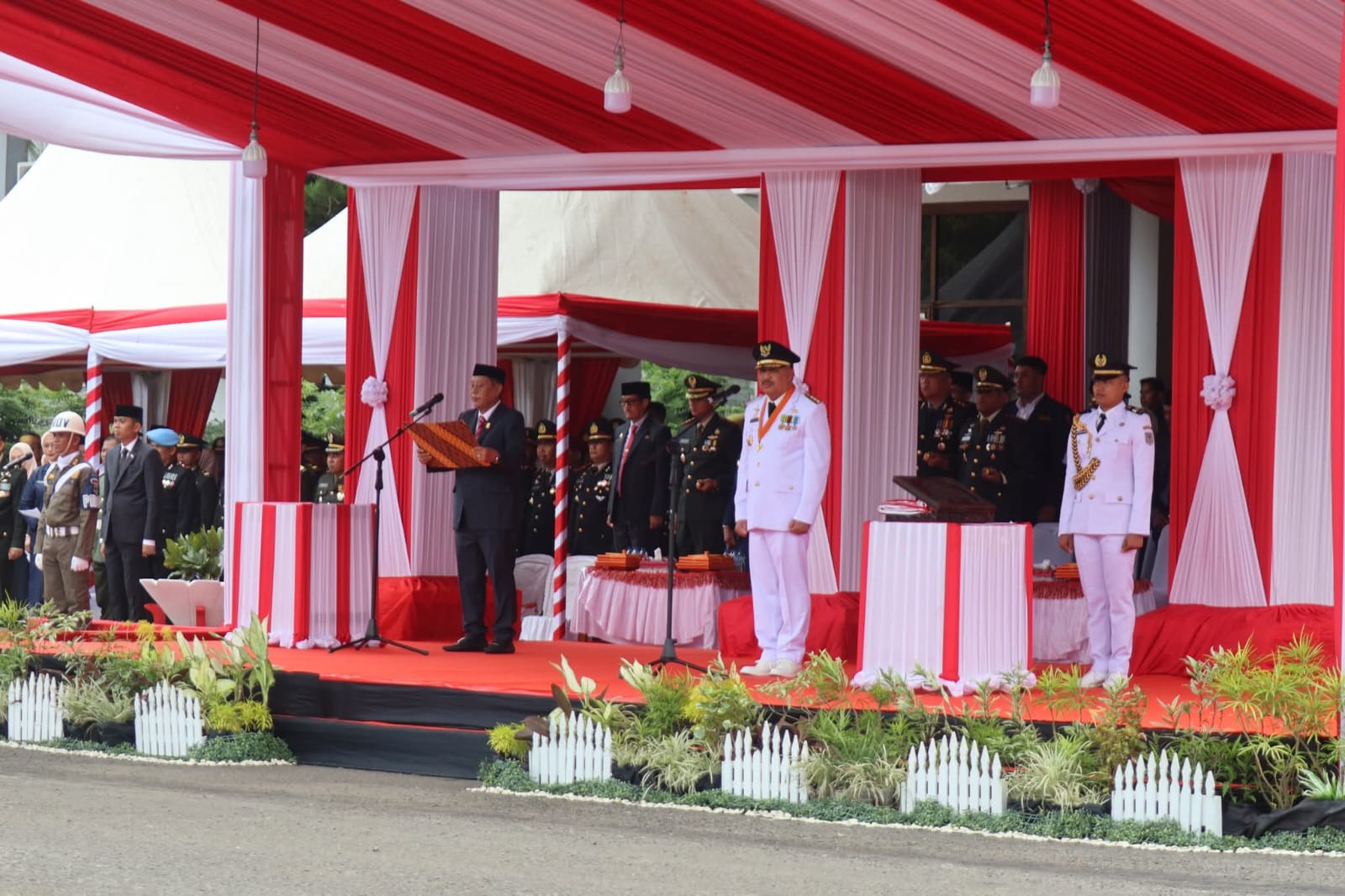Suasana semakin khidmat ketika Ketua DPRD Kabupaten Pinrang, H. Nasrun Paturusi membacakan teks Proklamasi, mengingatkan kembali semangat perjuangan para pendiri bangsa 80 tahun silam.