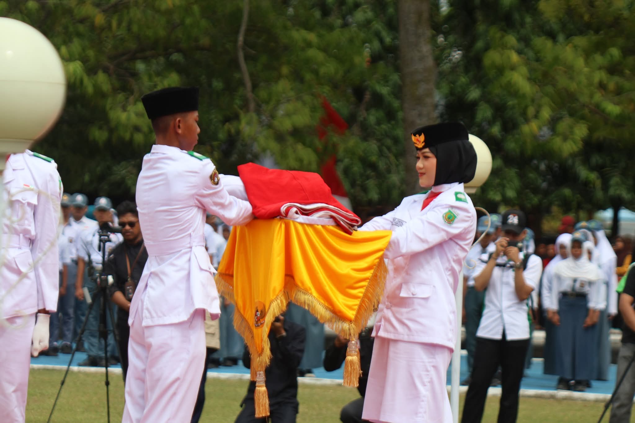 Momen bersejarah itu semakin lengkap dengan derap langkah tegas Pasukan Pengibar Bendera Pusaka (Paskibraka) Kabupaten Pinrang yang sukses mengibarkan Sang Merah Putih dengan penuh kehormatan.