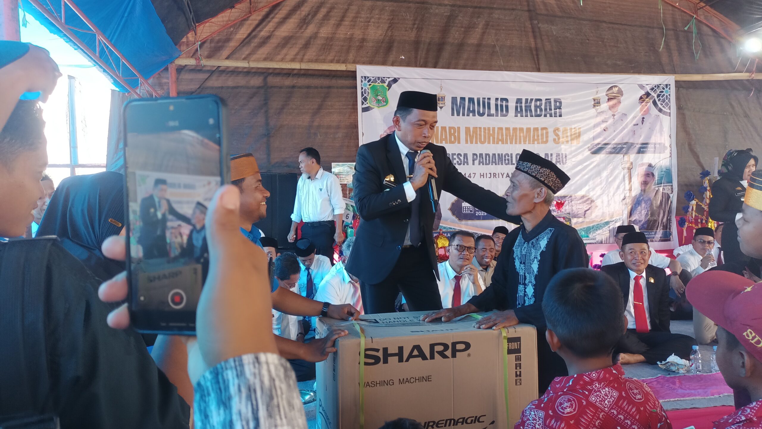 Kegiatan Maulid Nabi ini ditutup dengan pengundian hadiah doorprize. Hadiah Utama Berupa mesin cuci diraih H.Ali Dusun 1 Desa Padangloang Alau yang diserahkan langsung oleh Bupati Sidrap,H Syaharuddin Alrif.(Bahri/*)