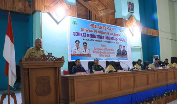 Pelantikan yang berlangsung di Aula Kantor Bupati Pinrang pada Selasa 7 Oktober 2025 ini yang dinahkodai Masrul Umar, SE, MM sebagai Ketua SMSI Kabupaten Pinrang.