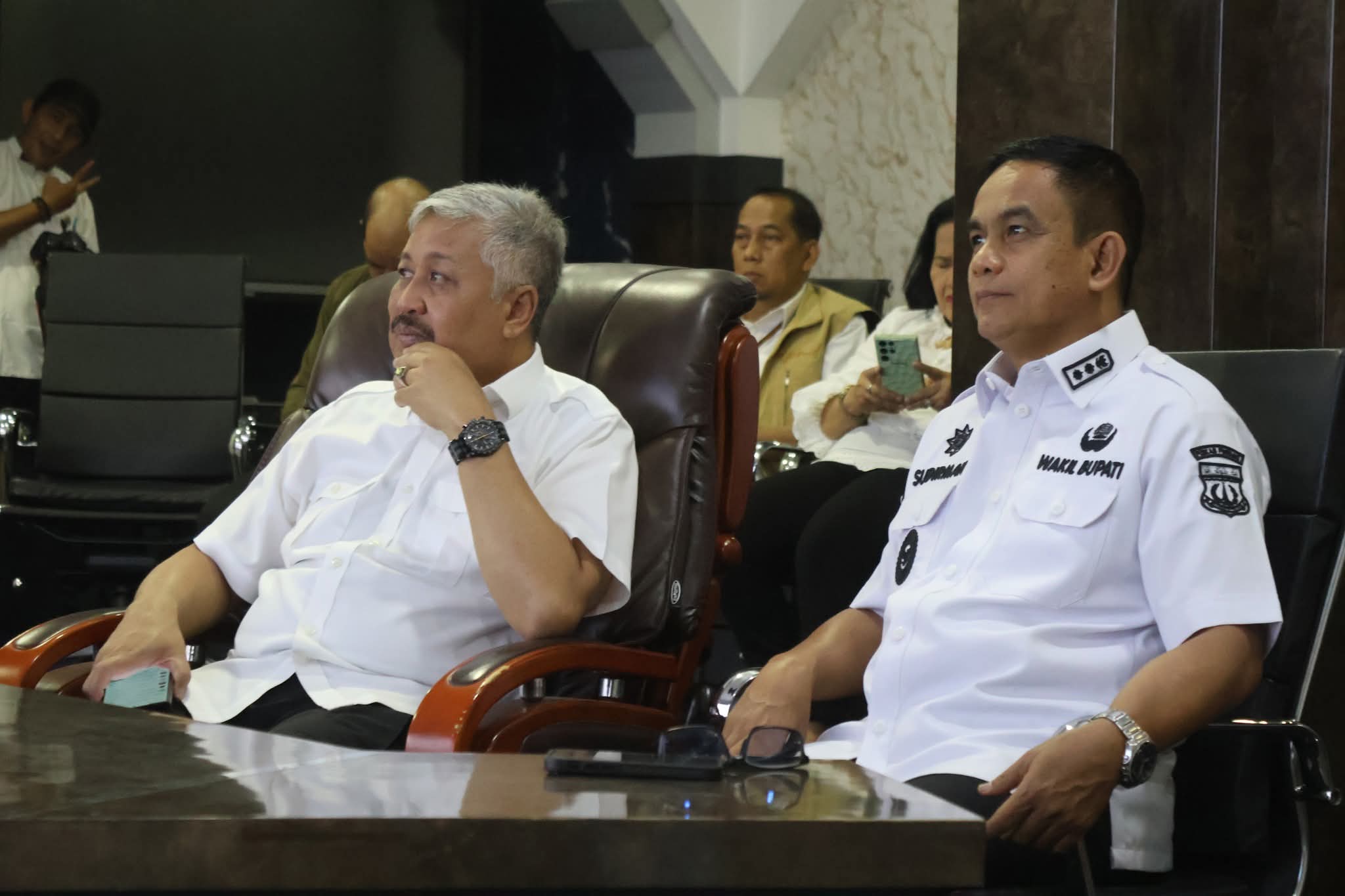 Bupati Pinrang H. A. Irwan Hamid, S.Sos, bersama Wakil Bupati Pinrang Sudirman Bungi, S.IP., M.Si., mengikuti Rapat Koordinasi Percepatan Penuntasan Tuberkulosis (TB) tingkat Provinsi Sulawesi Selatan secara daring, yang dipimpin langsung oleh Wakil Gubernur Sulawesi Selatan Hj. Fatmawati Rusdi, Rabu (8/10)