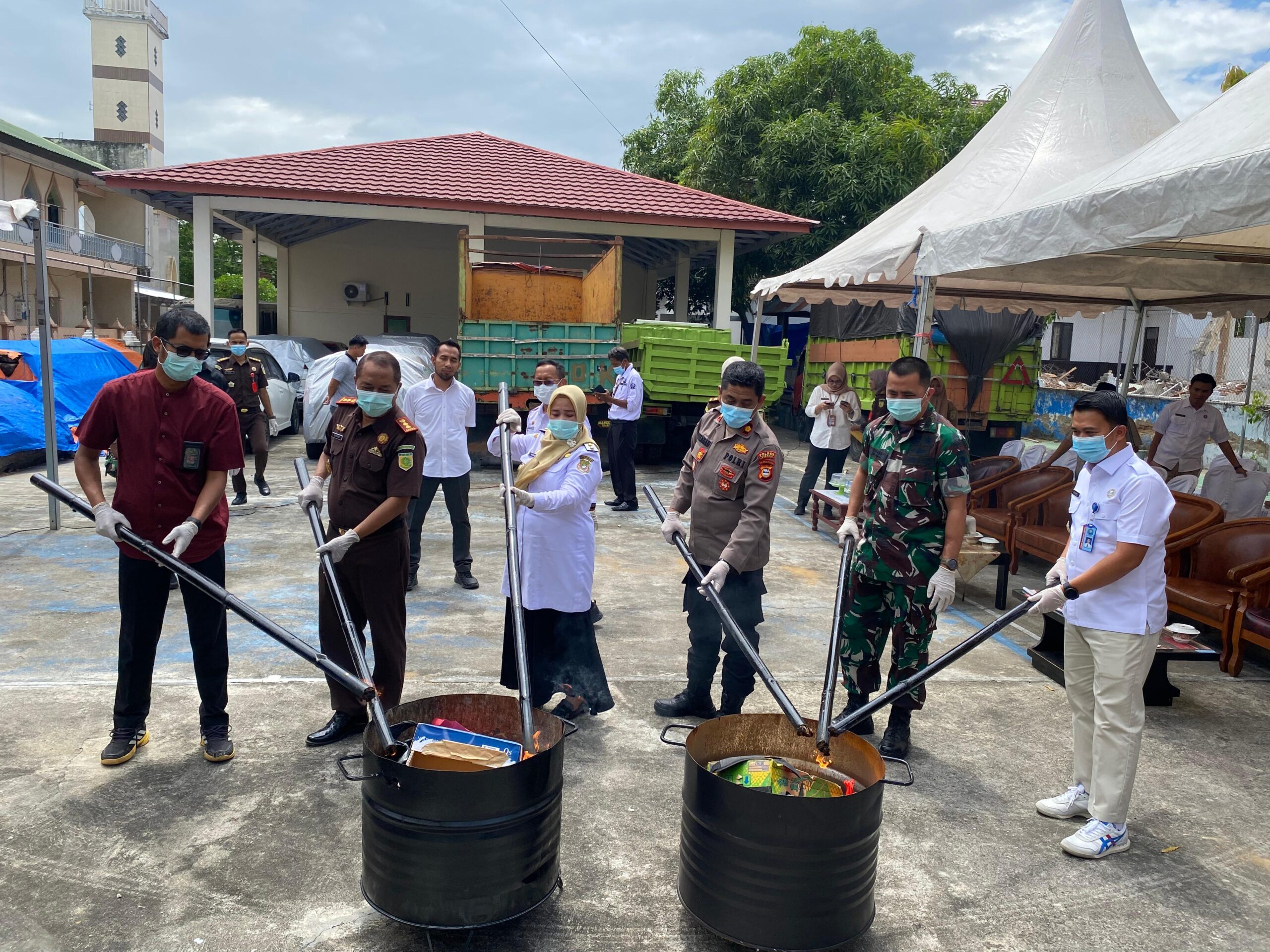 Pemusnahan dilakukan dengan beberapa cara, seperti dilarutkan ke dalam air untuk sabu-sabu, digerinda untuk badik dan telepon seluler, serta dibakar dalam wadah khusus.