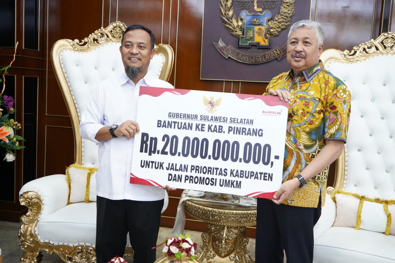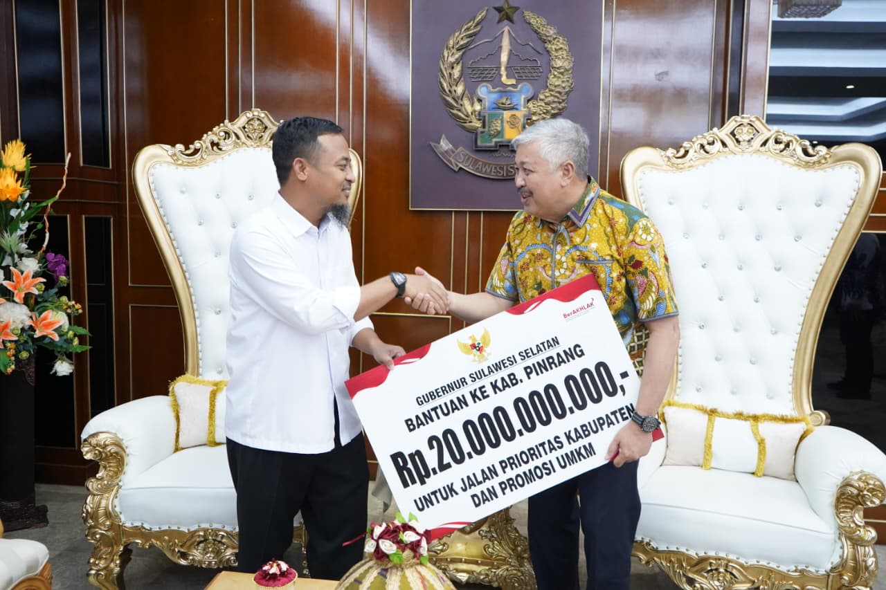 Hal ini ditandai dengan penyerahan bantuan keuangan secara simbolis dari Pemerintah Provinsi Sulsel kepada Pemerintah Kabupaten Pinrang. Bantuan tersebut diserahkan langsung oleh Gubernur Sulawesi Selatan, A. Sudirman Sulaiman, dan diterima oleh Bupati Pinrang, H. A. Irwan Hamid, S.Sos, dalam sebuah seremoni di Rumah Jabatan Gubernur Sulsel, Kamis (16/10/25).