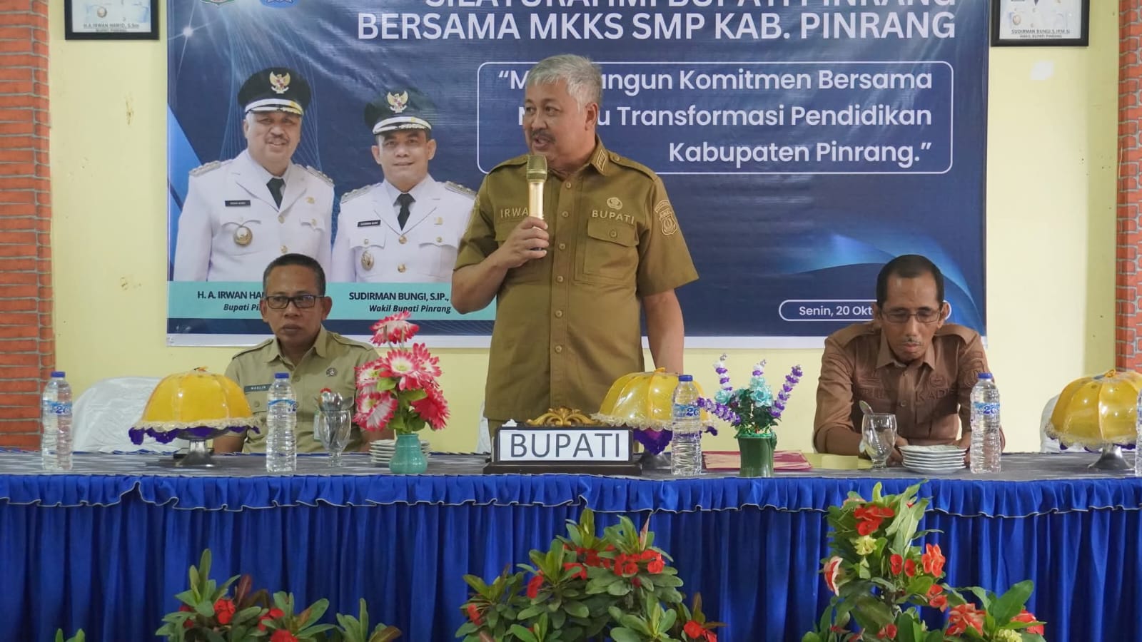 Hal ini disampaikan Bupati Pinrang, H. A. Irwan Hamid, S.Sos., saat menghadiri Silaturahmi Musyawarah Kerja Kepala Sekolah (MKKS) SMP se-Kabupaten Pinrang, Senin (20/10), di SMP Negeri 2 Pinrang.