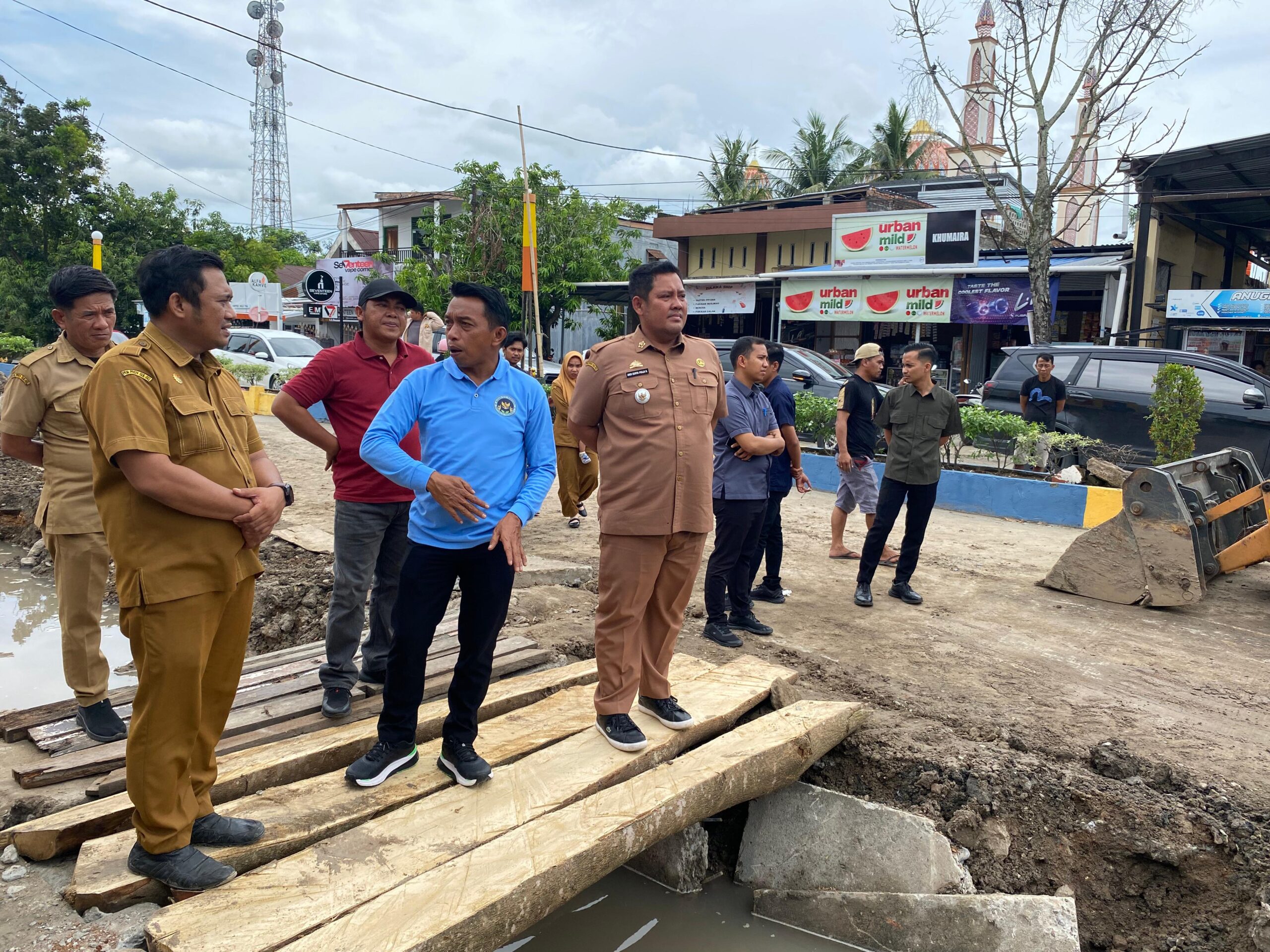 Pengerjaan dilakukan menggunakan alat berat untuk memperlancar aliran air yang tersumbat. Syaharuddin juga menyusuri jalur drainase guna memastikan penanganan berjalan efektif dan tuntas.