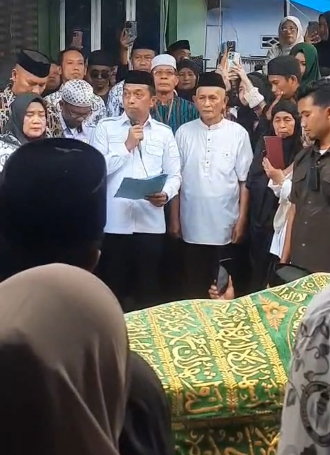 “Innalillahi wa inna ilaihi raji’un. Dengan penuh rasa belasungkawa, kami bersama seluruh hadirin memanjatkan doa agar dosa-dosa almarhum diampuni, amal baktinya diterima oleh Allah SWT, serta arwahnya ditempatkan di tempat terbaik di sisi-Nya,” ujar Bupati.