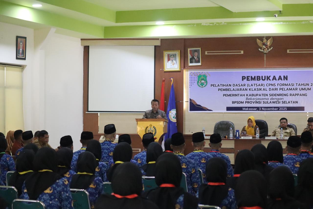 Metromilenial online.com, Sidrap–Sebanyak 85 Calon Pegawai Negeri Sipil (CPNS) Pemerintah Kabupaten Sidrap Formasi Tahun 2024 mengikuti Pelatihan Dasar (Latsar) di Kampus II Badan Pengembangan Sumber Daya Manusia (BPSDM) Provinsi Sulawesi Selatan, Makassar.