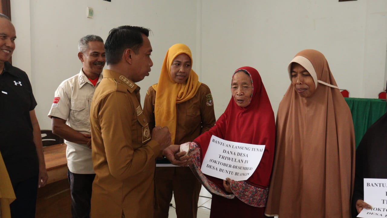 Usai bermalam di kawasan wisata Bukit Punjabu, Desa Buntu Buangin, Bupati menuju kantor desa setempat untuk menyerahkan Bantuan Langsung Tunai (BLT) kepada masyarakat.