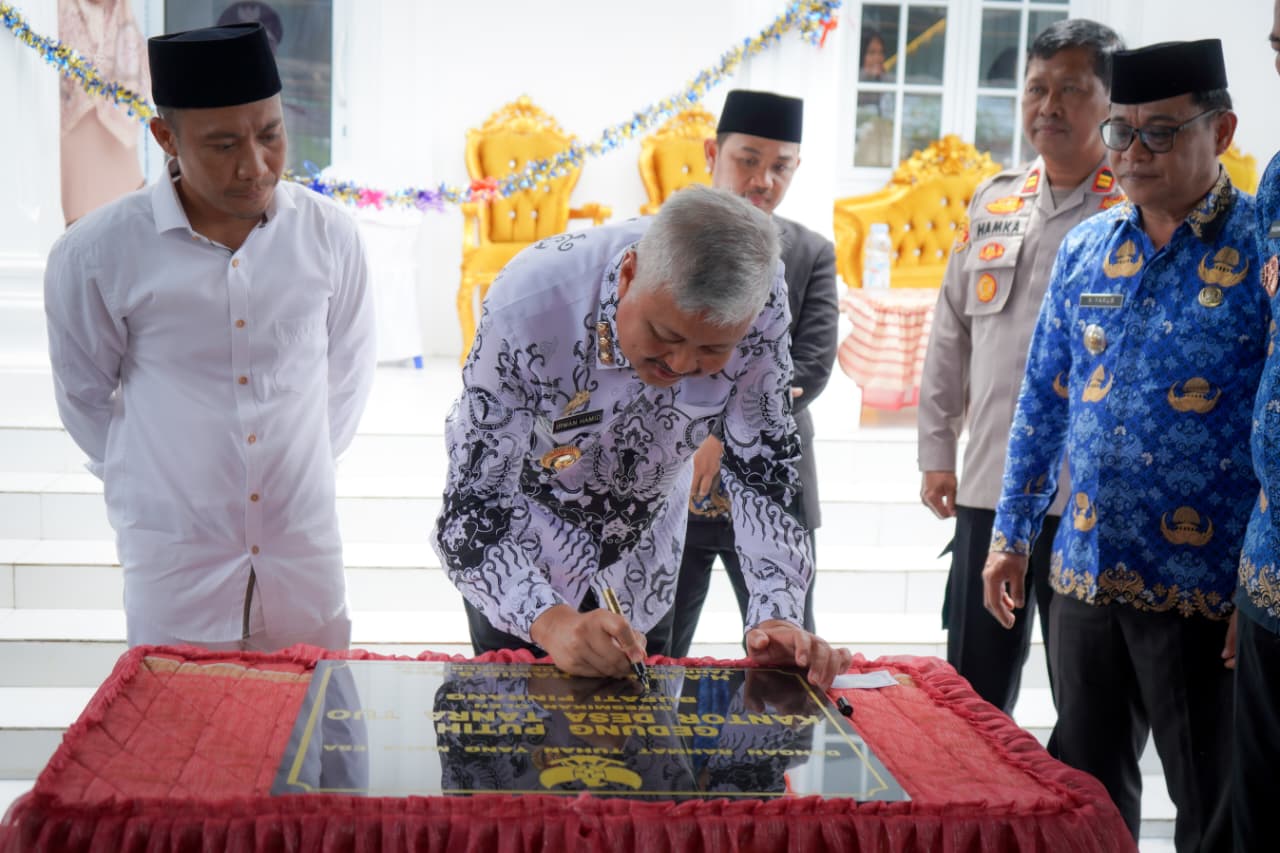 Dalam sambutannya, Bupati Irwan menegaskan bahwa kantor desa bukan sekadar bangunan fisik, tetapi representasi dari kehadiran pemerintah dalam memberi pelayanan terbaik kepada masyarakat.