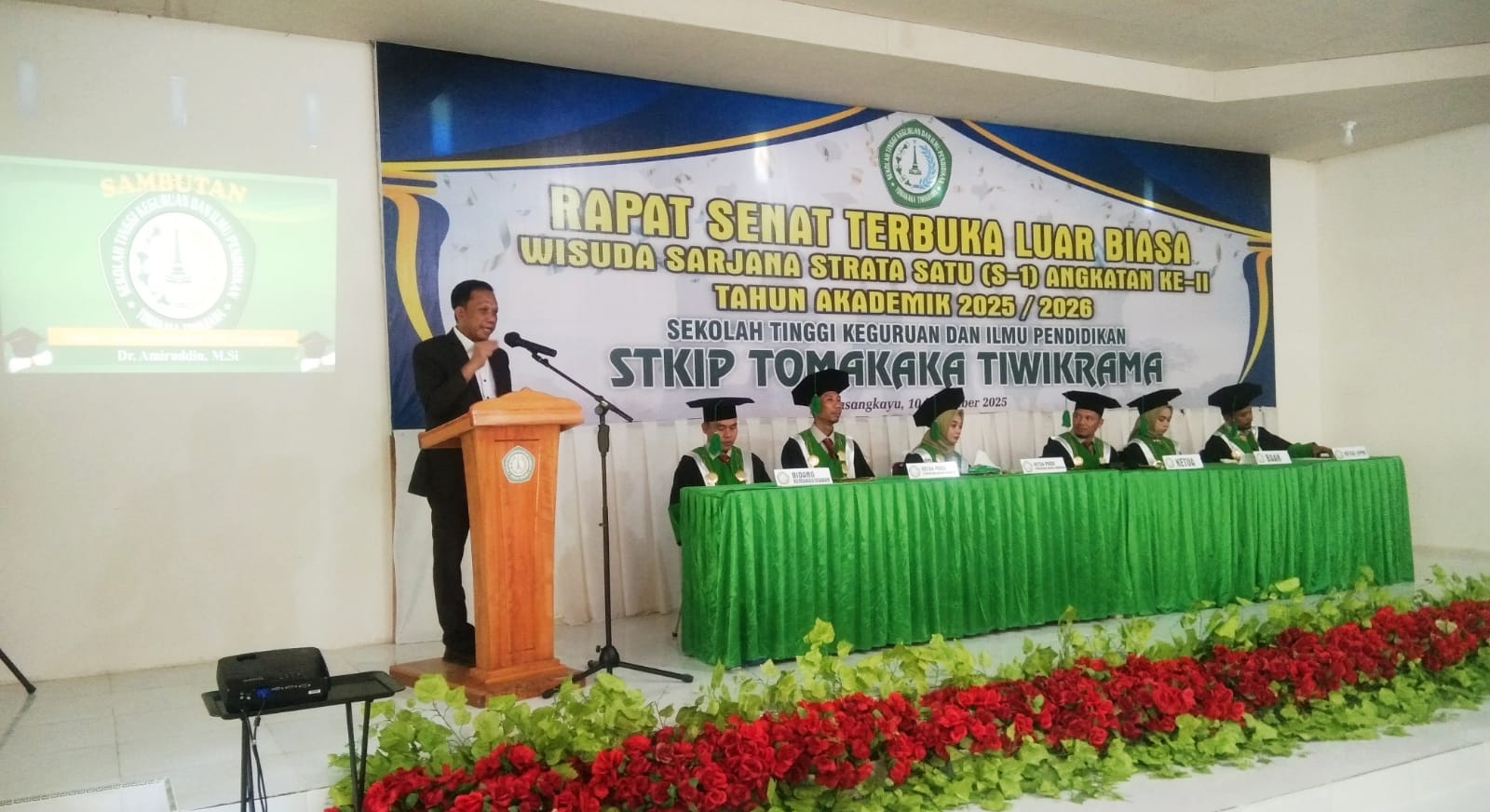 Ketua STKIP Tomakaka Tiwikrama, Iskandar, S.Pd, SD, M.Pd, membuka rapat senat terbuka dan menyampaikan apresiasi kepada semua pihak yang telah mendukung terlaksananya wisuda. Tahun ini, sebanyak 44 sarjana resmi dikukuhkan, terdiri dari 25 lulusan Pendidikan Bahasa Inggris dan 19 lulusan Pendidikan Bahasa Indonesia. Mereka merupakan generasi kedua yang diharapkan mampu menjadi motor peningkatan kualitas pendidikan di Pasangkayu.