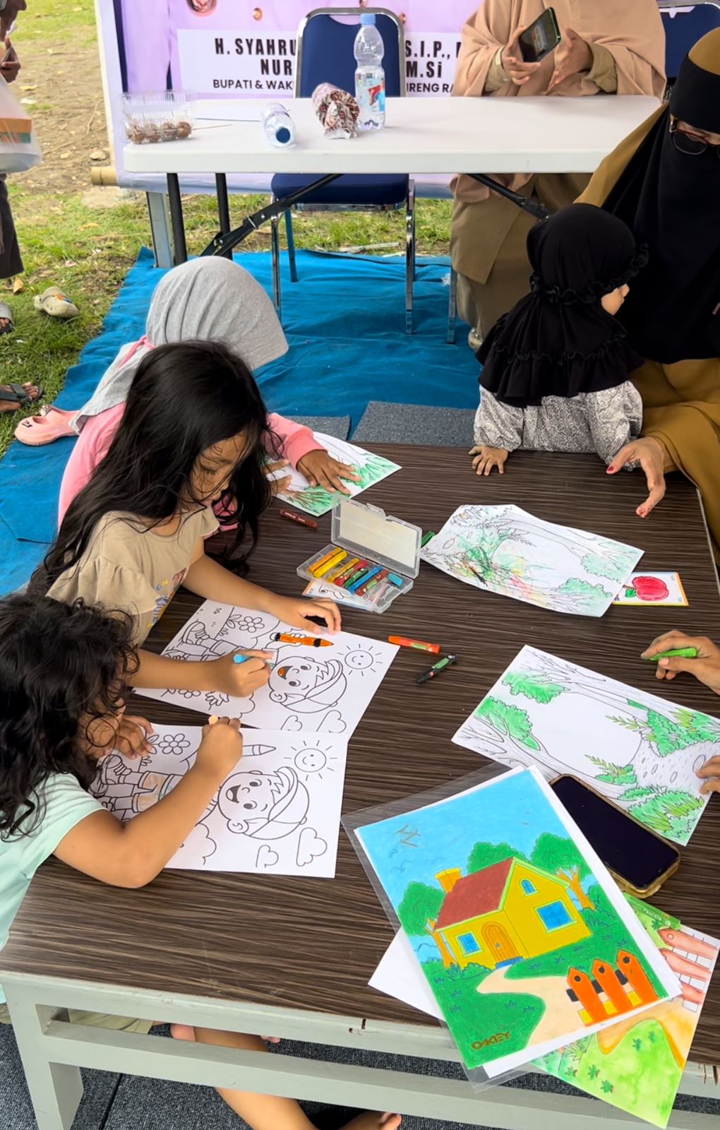 Salah satu OPD yang menarik perhatian pengunjung adalah Dinas Perpustakaan dan Kearsipan Kabupaten Sidenreng Rappang. Di stand mereka, anak-anak tampak antusias mengikuti layanan mewarnai, yang sejak awal menjadi layanan paling diminati.