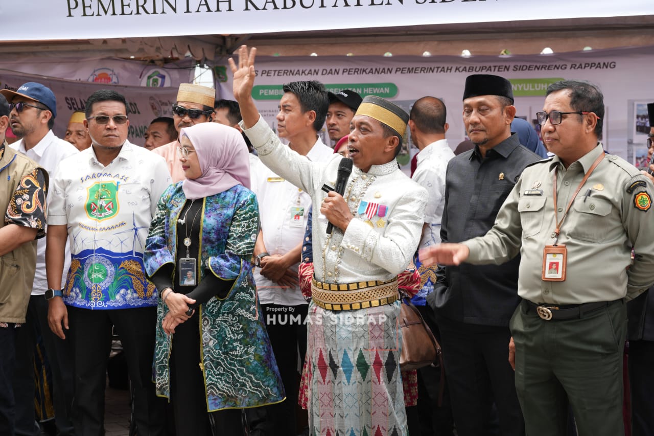 Pelepasan beras, telur, daging, dan DOC broiler dipimpin Bupati Sidrap Syaharuddin Alrif dan Wakil Bupati Sidrap Nurkanaah di Pelataran Monumen Ganggawa, menjadi bagian dari upaya menjaga pasokan dan stabilitas pangan nasional.