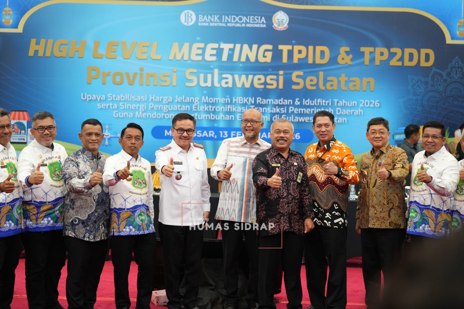 Metromilenial online.com, Sidrap—Bupati Sidrap Syaharuddin Alrif menghadiri High Level Meeting (HLM) Tim Pengendalian Inflasi Daerah (TPID) dan Tim Percepatan dan Perluasan Digitalisasi Daerah (TP2DD) Provinsi Sulawesi Selatan periode Januari 2026 di Ruang Pola Kantor Gubernur, Jumat (13/2/2026).