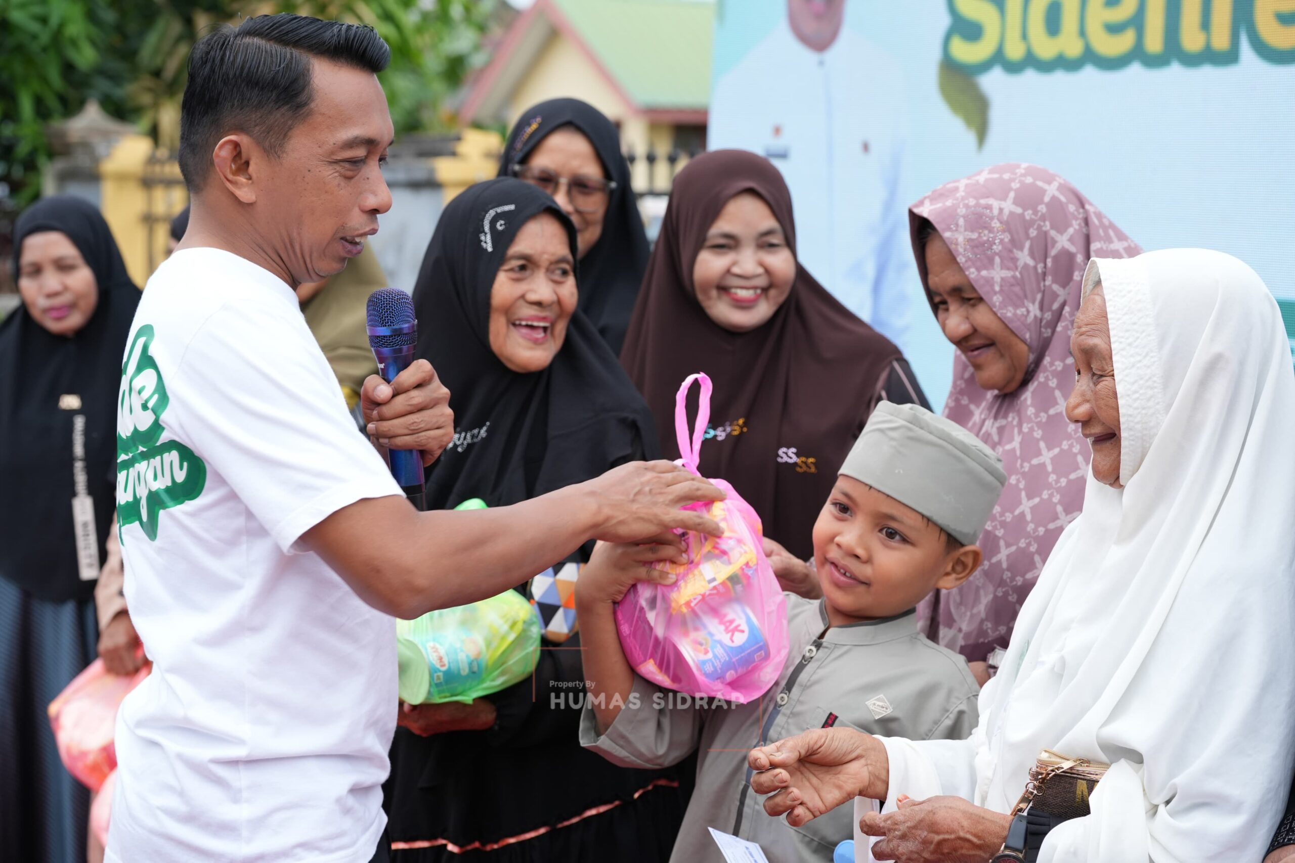 Bupati Sidrap Syaharuddin Alrif hadir jelang waktu berbuka puasa dan menyerahkan langsung bantuan sembako kepada warga.