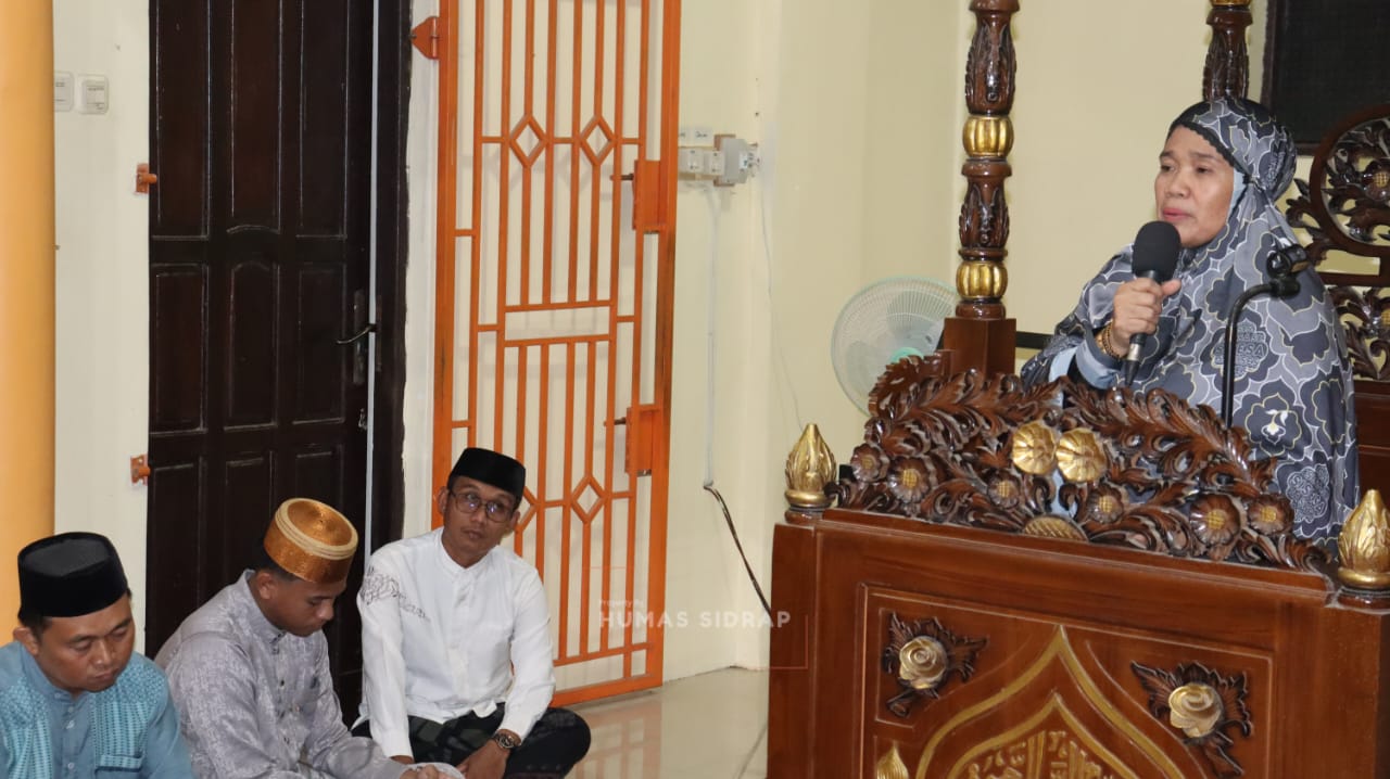Metromilenial online.com,Sidrap–+Wakil Bupati Sidenreng Rappang (Sidrap), Nurkanaah, menyampaikan ceramah tarawih di Masjid Ar-Raudah, Kelurahan Arateng, Kecamatan Tellu Limpoe, pada Senin (9/3/2026) malam.