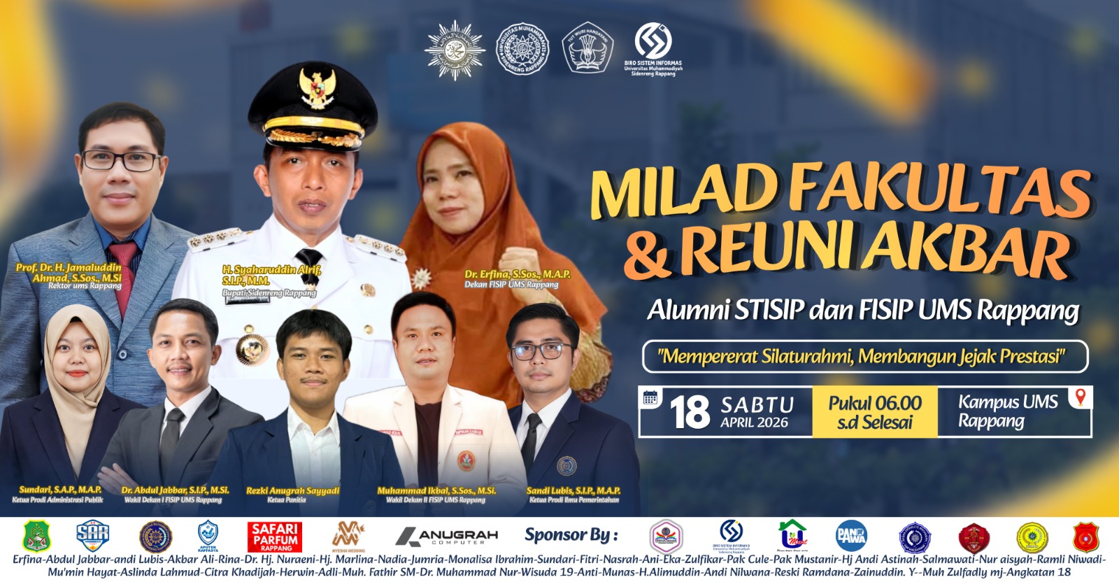 Metromilenial onlme.cim, SIDRAP — Panitia pelaksana Milad Fakultas dan Reuni Akbar Alumni STISIP dan FISIP Universitas Muhammadiyah Sidenreng Rappang (UMS Rappang) memastikan seluruh persiapan kegiatan yang akan digelar pada Sabtu (17/4/2026) telah hampir rampung.